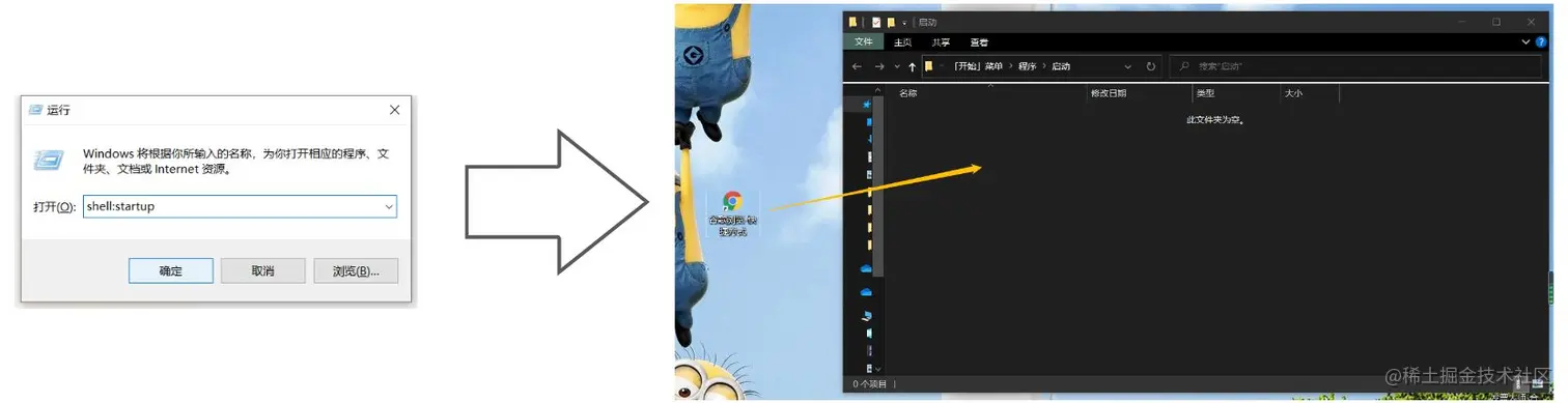 win+R输入shell:startup 添加开机启动项,将快捷方式拖入开机启动文件夹中。