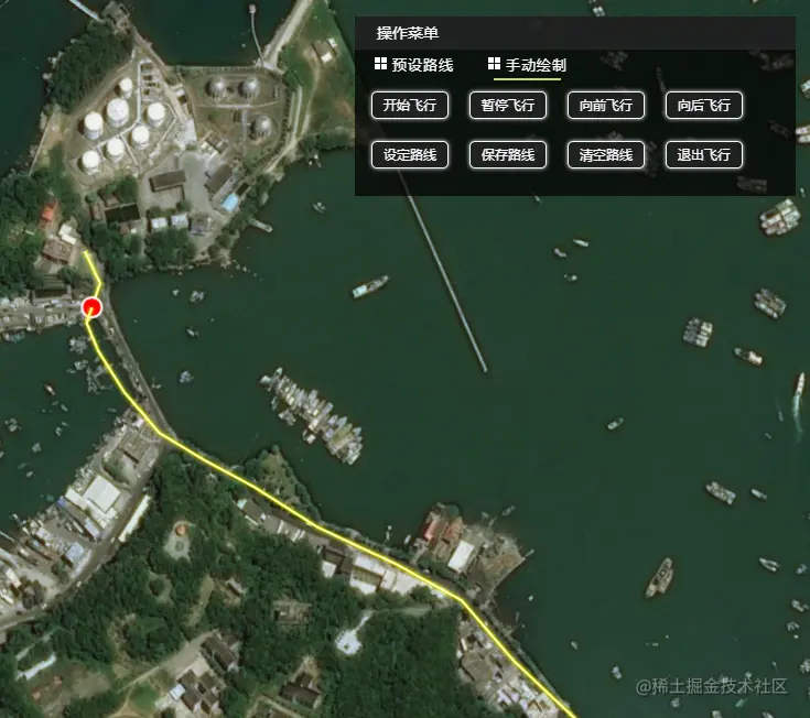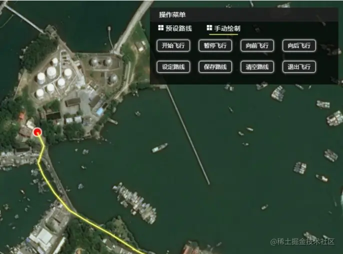 //设定路线 $("#draw_Fly3DPaths").click(function(){ if(!bxmap.FlyCesium.drawHelper){ bxmap.FlyCesium.drawHelper = new DrawHelper(bxmap.FlyCesium.cesium.cesiumViewer); } bxmap.FlyCesium.draw3DObj = bxmap.FlyCesium.cesium.DrawFly3DPaths(bxmap.FlyCesium.drawHelper); });