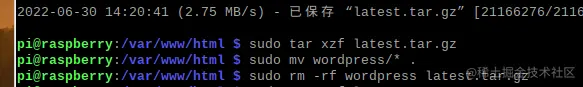 接着我们输入命令,解压wordpress的安装包。命令为
