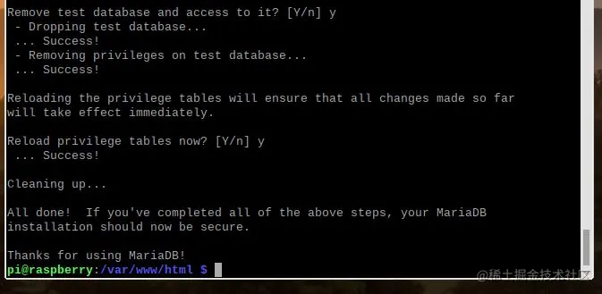 直到看到消息 All done!和Thanks for using MariaDB!。表示设置已经完成。