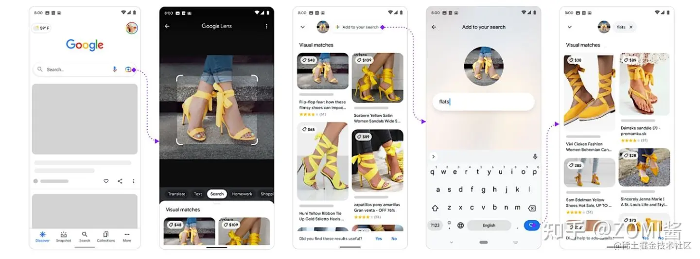 - 检索任务(Index Task) :主要包括文本检索图片或者图片检索文本,检索任务应该不用加以过多的解释了,比较好理解,就是以文搜图或者以图搜文。下面图中就是Google 以图搜文的服务,当然包括华为手机里面的截图识字,淘宝拼多多的以文搜图等身边很多诸如此类的服务啦。
