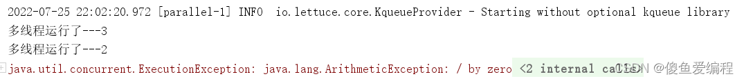 System.out.println("integerFuture返回结果 = " + i + "==" + integerFuture[i].get());