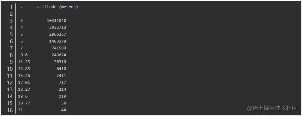根据camera高度近似计算当前层级,首先说明一个问题,就是cesium加载切片图层的时候,它会混合层级加载,不像二维地图,当前层级都一致,通过拉伸镜头对地球的距离,发现拉伸远近与与二维地图有以下的关系,根据这个关系,近似计算当前层级
