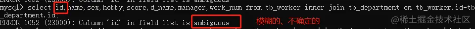 比如,两张表中都有id字段,查询时如果要查询这个id字段的话,数据库就不知道应该返回哪一张数据表中的id 字段,就会返回错误。