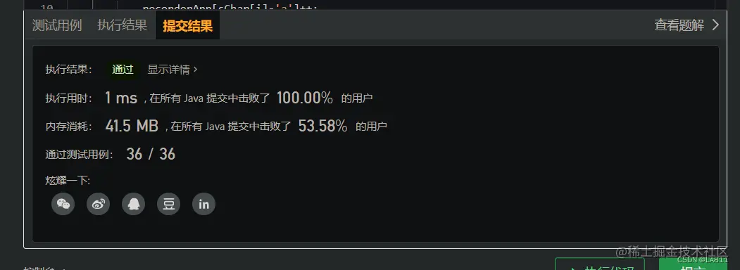 思路二:用一个int数组统计一个字符串中每一个字符出现的次数,然后遍历另一个字符串,每次扫描到一个字符就让其在int数组出现的次数减一。如果全部遍历完成就算是完全匹配,如果期间出现一个字符匹配出现次数为0说明两个字符串不同返回flase