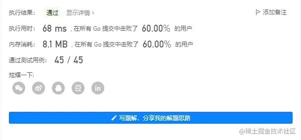 本题咱们的实现方式,实际上是遍历了一次题目给出的 gas 和 cost ,因此时间复杂度是 O(n),空间复杂度的话,是 O(1),我们只引入了常数级别的空间消耗