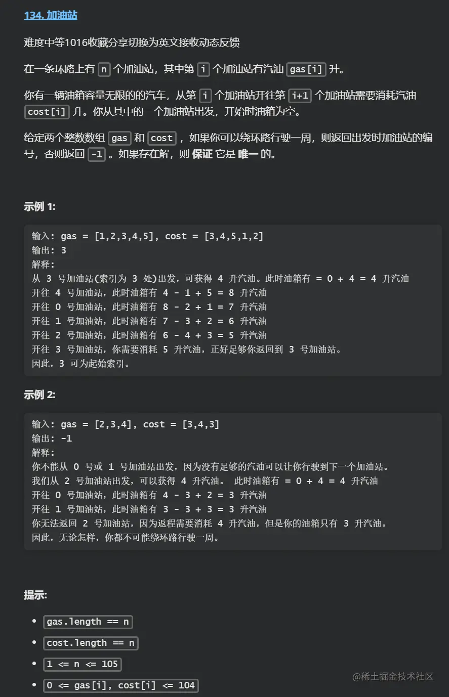 本次刷题日记的第 96 篇,力扣题为:134. 加油站