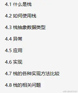 栈是一种用于存储数据的简单数据结构(与链表类似)。数据入栈的次序是栈的关键。可以把自助餐厅中的一-堆盘子看作-一个栈的例子。当盘子洗干净后,它们会添加到栈的顶端。当需要盘子时,也是从栈的顶端拿取。所以第一个放人栈中的盘子最后才能被拿取。