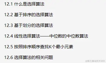 选择算法是在某个列表中寻找第k个最小/最大数字(也称为第k个顺序统计量)的算法法。这包括查找最小值、最大值和中位数。对于查找第k个顺序统计量,有多种不同的复杂的解决方案,本章将列举所有这些可能的解决方案。