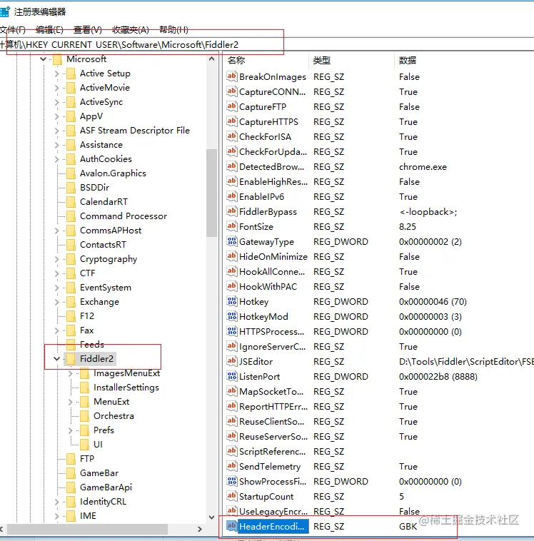 - HKEY_CURRENT_USER\Software\Microsoft\Fiddler2