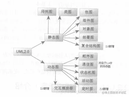 UML可分为结构型和行为型,但有些划分是并不明确的,结构型的图描述的是某种结构,这种结构在某段时间内应该是稳定的,“静态”的;而行为型的图描述的是某种行为,是“动态”的。