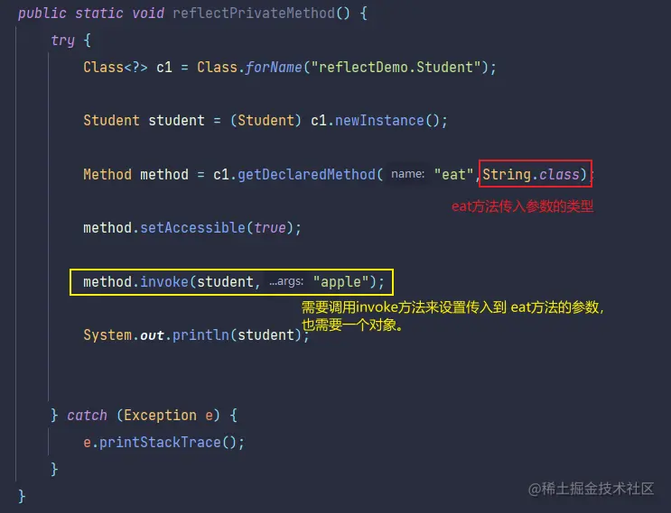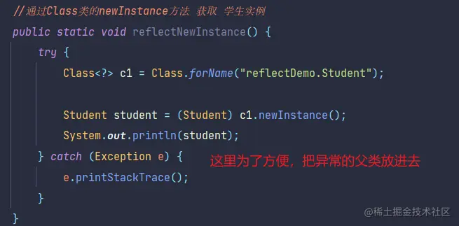 通过 newInstance 方法,实例化 类Student,获取该对象的引用后,我们就可以调用Student里面的方法了(但是仅限于具有公共属性的方法)。