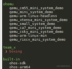 4、在源码目录下,输入hb set,然后选择当前文件路径,即输入.(点),然后通过方向键选取team_x下的boxing,如下图: