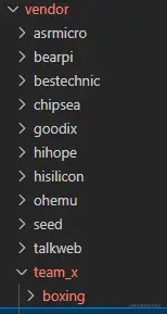 2、在源码根目录下的vendor目录下,新建team_x文件夹;