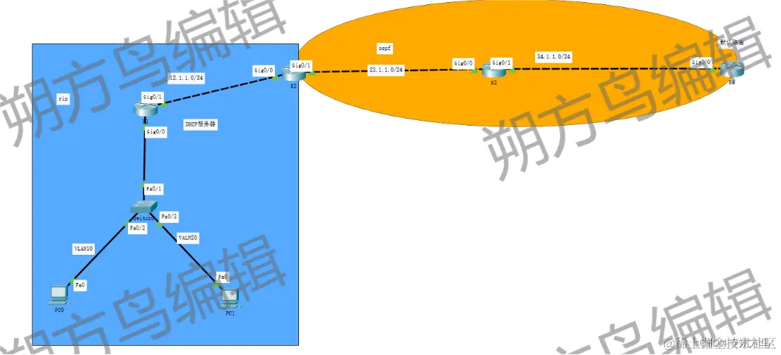 ② 在R1与R2间启用RIP协议,R2和R3间启用OSPF协议并实现互通;