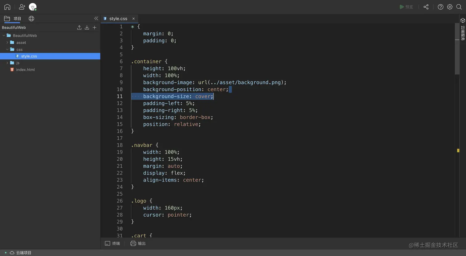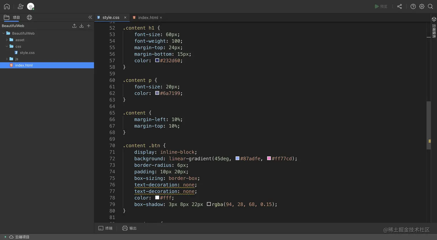 再次切换到 HTML 文件中,点击运行就可以预览项目文件效果了!