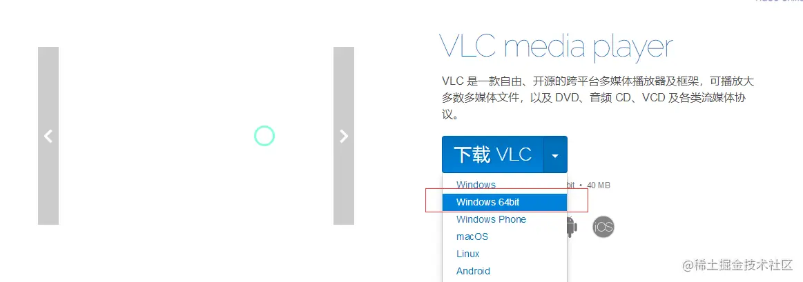 因为我的电脑是64位的,所以我下载64位的VLC版本,如下图: