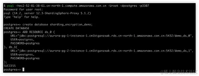Following the comprehensive architecture introduction, let's now jump into a step-by-step guide for creating a sharding and secure Aurora database system. In other words, we use ShardingSphere's sharding plugin, data encryption plugin, and ShardingSphere-Proxy for PostgreSQL to build a distributed database system, as shown in the following figure.