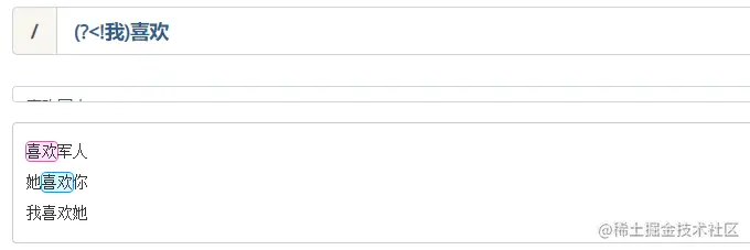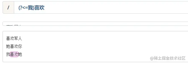 - 正向后行断言:(?<=表达式),指在某个位置往左看,存在表达式中的内容。