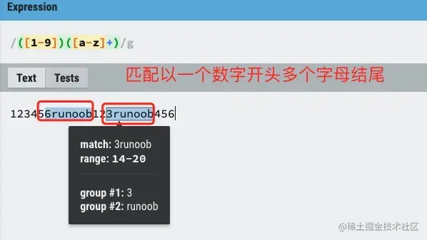 - + -表示前面的字符至少匹配 1 次或多次。
