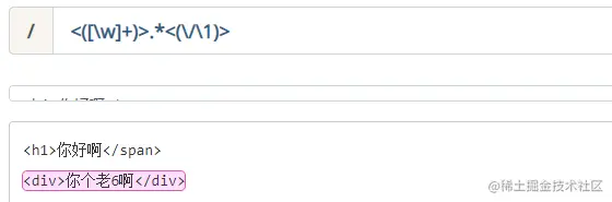 我们可以把后面的部分改成 “<\/\1>” 其中 “\1” 就是引用第一个分组。这样一来我们就可以匹配正确的 HTML 标签了。
