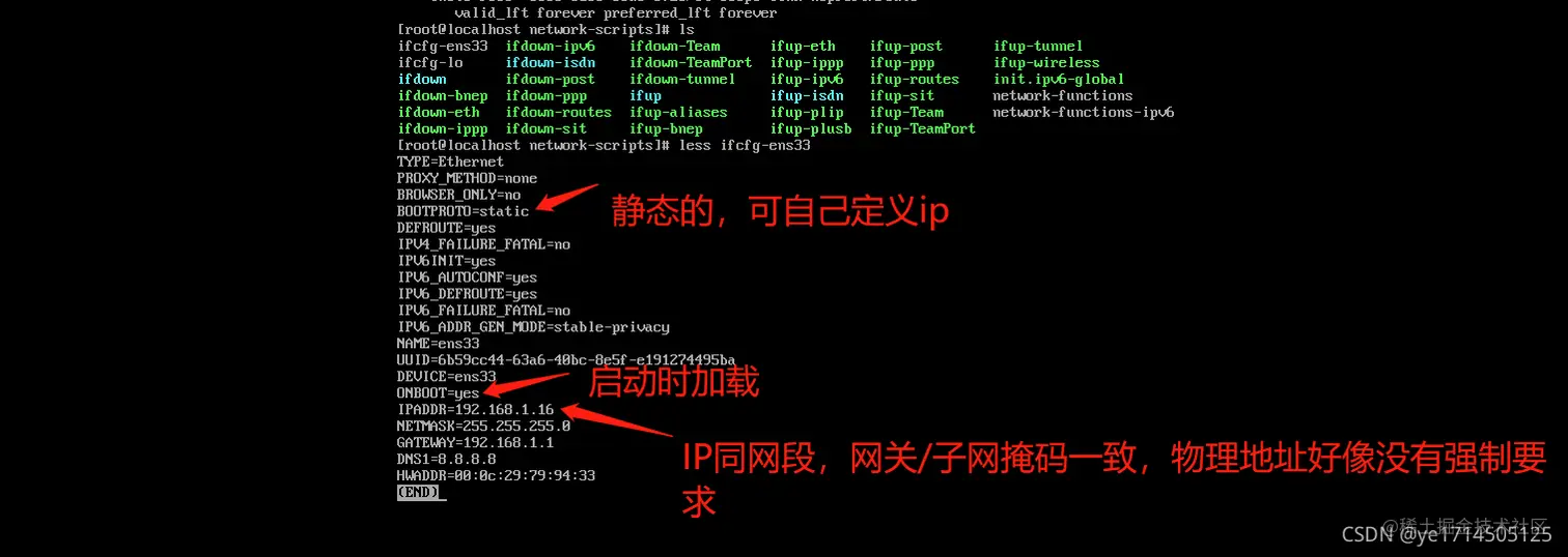 vi ifcfg-ens33 (感觉每个linux环境上配置IP的文件可能不一致,ip addr 可以看到读取的是哪个配置,如截图)