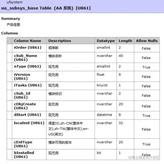 表名:UFSYSTEM库 ua_subsys_base表