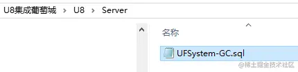 (2)U8服务器端环境准备 注意:为满足集成需要,请使用SQL Server数据库管理工具,打开安装包中\U8\Server文件夹中的UFSystem-GC.sql文件: