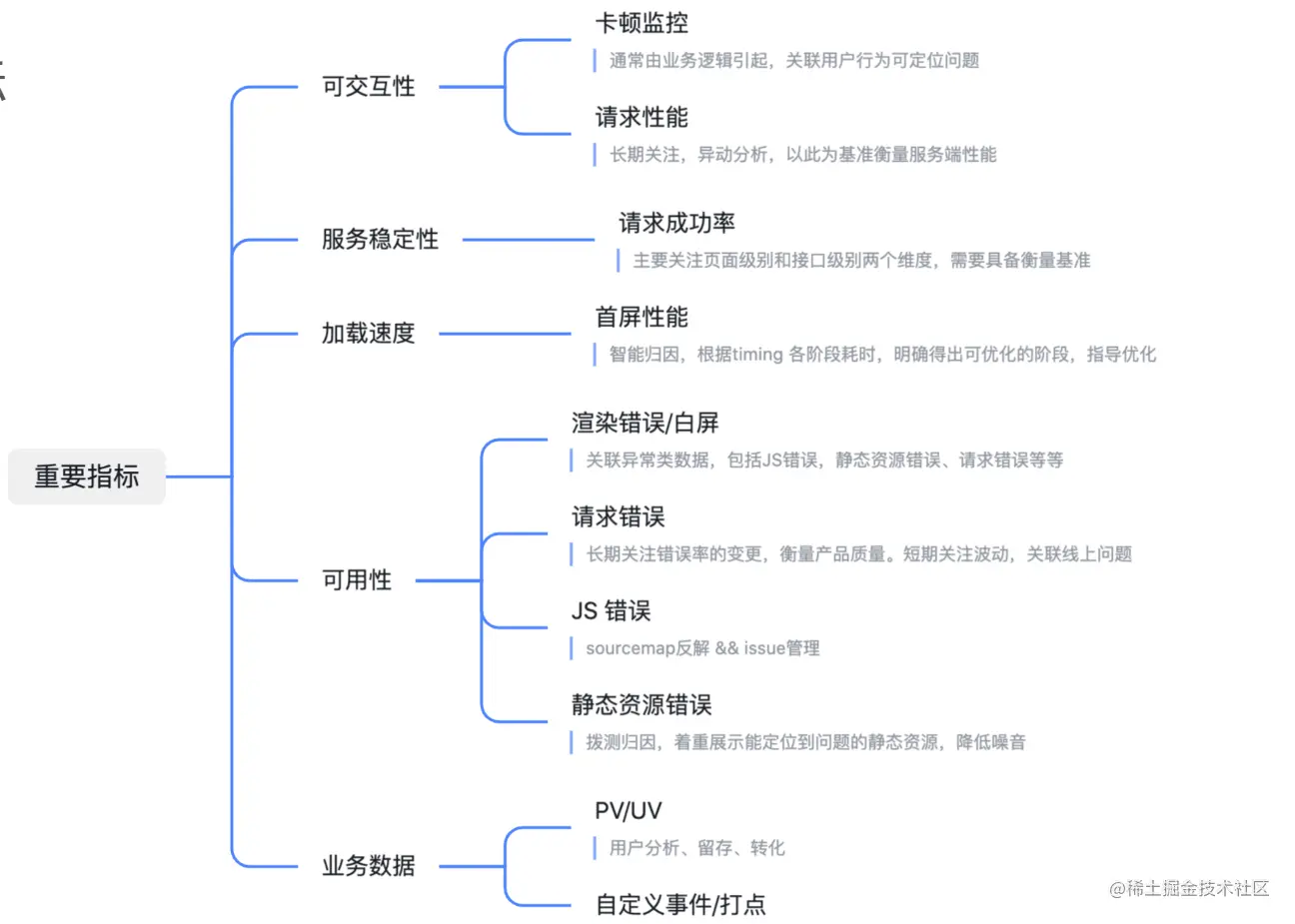 - JS错误:错误对应类型、描述、行列号、堆栈,错误发生前的用户交互、错误的上下文等等