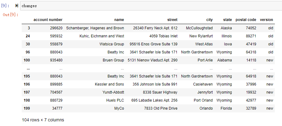 df_added = changes[changes["account number"].isin(added_accts)]df_removed = changes[changes["account number"].isin(dropped_accts)]df_added = changes[changes["account number"].isin(added_accts)]