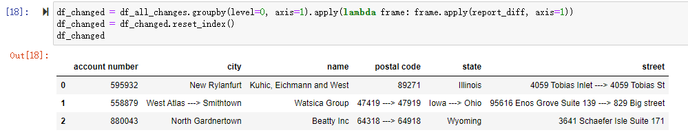 df_changed = df_changed.reset_index()df_changed = df_all_changes.groupby(level=0, axis=1).apply(lambda frame: frame.apply(report_diff, axis=1))df_changed = df_changed.reset_index()
