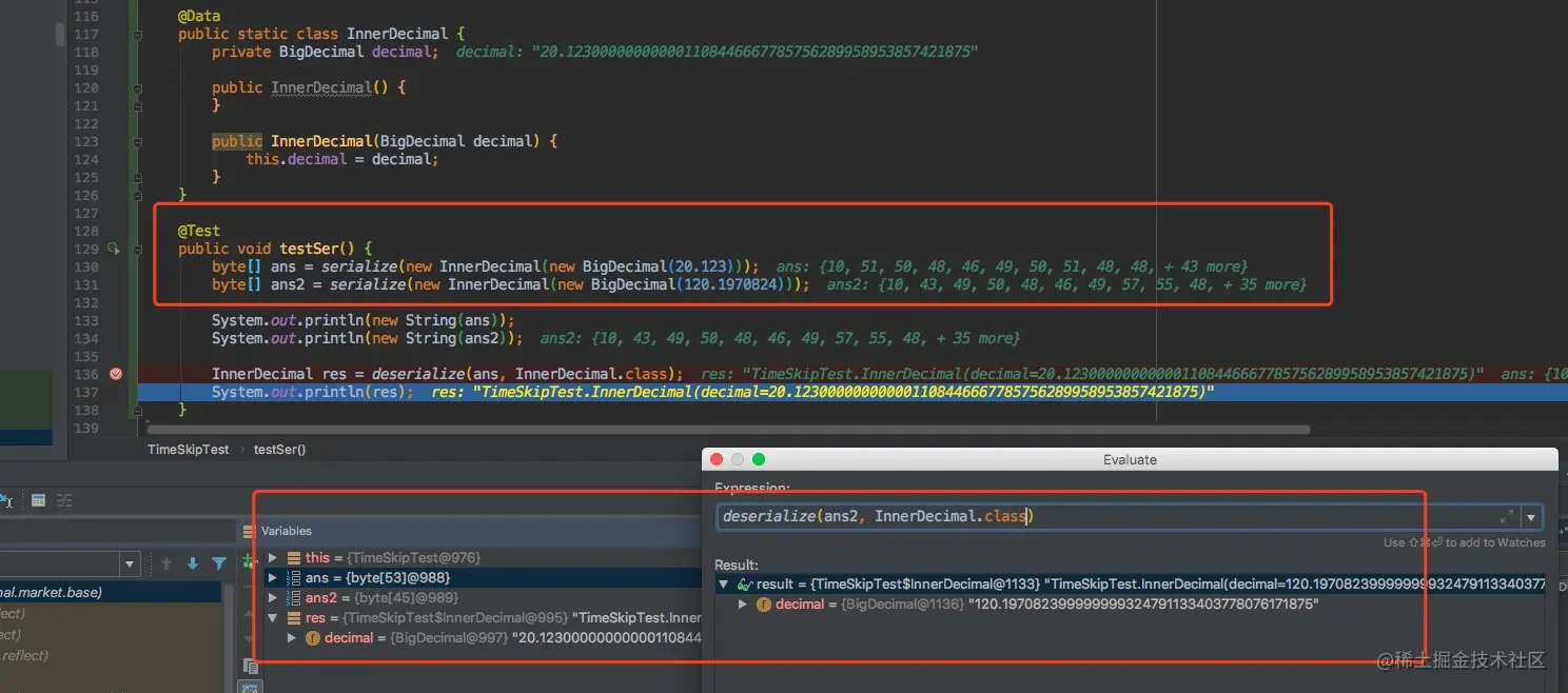 上面的说法是ProtoStuff更多的是用于简单对象的序列化,而不是基础的jdk类型,因此推荐的是序列一个成员变量为BigDecimal的对象