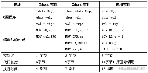 正是由于存储器类型在编译时已经确定,通用指针中用来表示存储器类型的字节就不再需要了。指向idata、data、bdata和pdata的存储器指针用一个字节保存,指向code和xdata的存储器指针用两个字节保存,使用存储器指针比通用指针效率要高,速度要快。