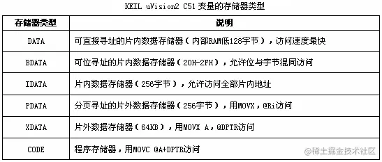 DATA区、BDATA区、IDATA区、PDATA区、XDATA区、CODE区 指明该变量所处的内存空间