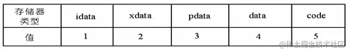 存储类型部分代表了该指针所指向的变量的存储器类型,存储类型的代码如下表所示:
