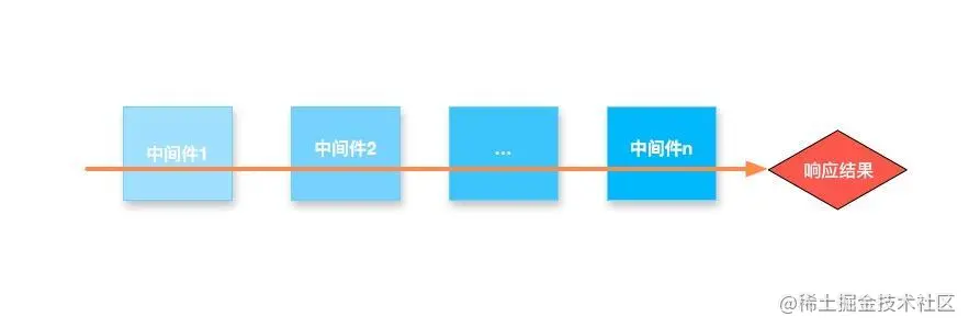 Koa 和 Express 都会使用到中间件,Express的中间件是顺序执行,从第一个中间件执行到最后一个中间件,发出响应:
