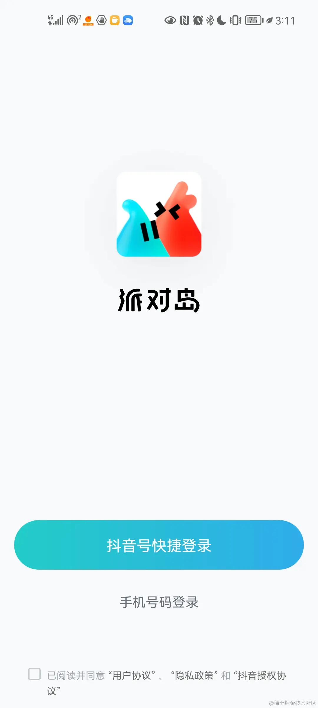 在使用 APP 派对岛 的时候,发现它的页面很好看,同时其首要的登录方法也是跳转去采用抖音来登录的。符合当前的业务需求,所以决定仿写该页面作为大作业的登录界面。话不多说,开始仿写吧😁