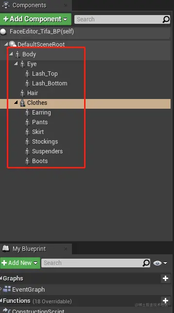 双击打开后,在左侧的 Components 下添加所有的 Skeletal Mesh:
