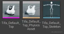 将 fbx 格式的模型导入 UE 编辑器中,会生成 Skeletal Mesh、Physics Asset、Skeleton 3 个文件: