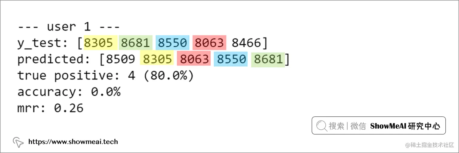 我们单独看 user1 这个用户,混合模型在多种信息的支撑下,获得了最高的准确度。