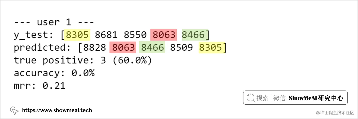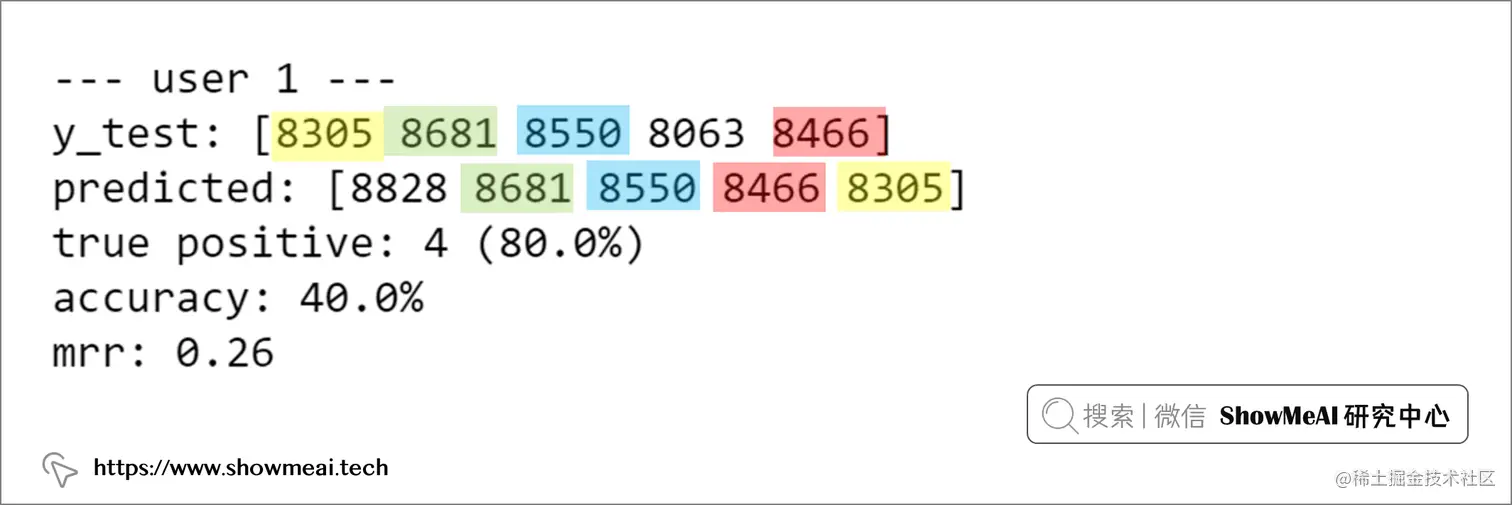 我们再基于现在这个神经网络的模型,去对我们最终的电影打评分进行预测,并且根据预测的得分进行排序和推荐,那评估的结果如下所示。