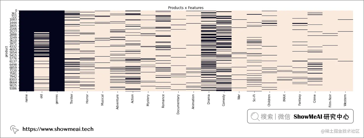 下一步我们构建 Moives-Features 矩阵: