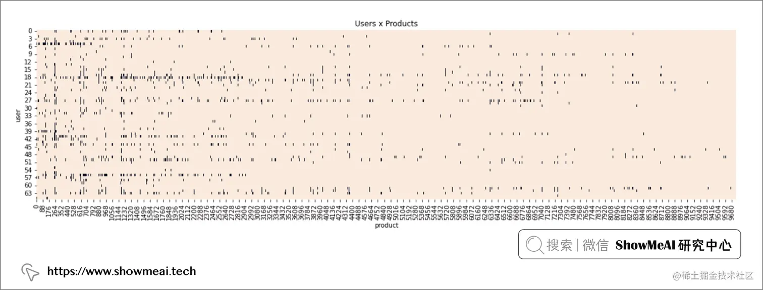 下面是我们的 『观众/用户-电影』 评分矩阵,我们发现它更为稀疏(每位用户实际只看过几部电影,但总电影量很大)