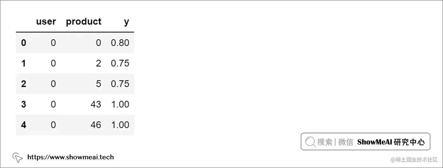 - 用户行为 : 当前场景下是电影的打分,它是一种显式用户反馈;有些场景下我们会使用隐式的用户反馈,比如说用户的点击或者深度浏览和完播等行为。