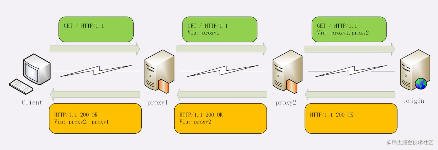 - Proxy:就是代理。代理一般分为正向代理和反向代理,正向代理靠近客户端,反向代理靠近服务端。刚刚我们提到的CDN属于反向代理,而我们访问外网用的VPN就属于正向代理。