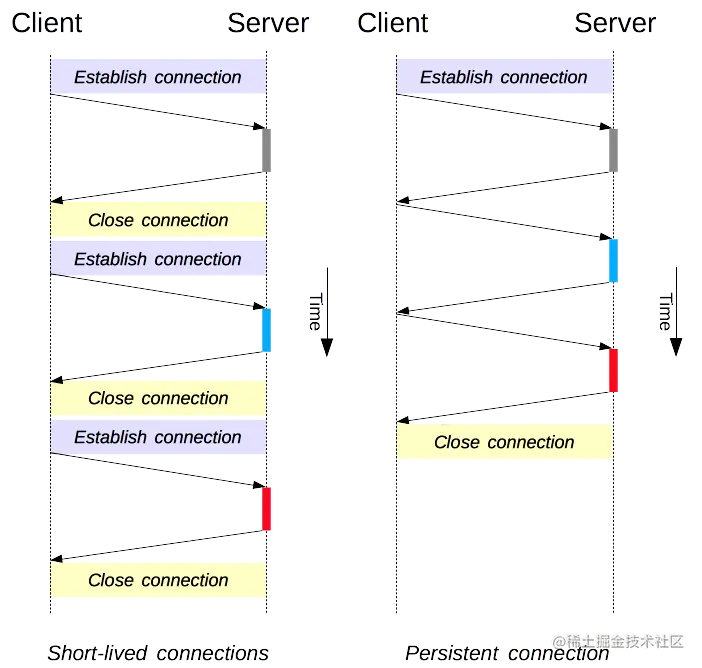 下面我再放上《透析HTTP协议》里的通信过程对比图,你可以再看看它们的差异。