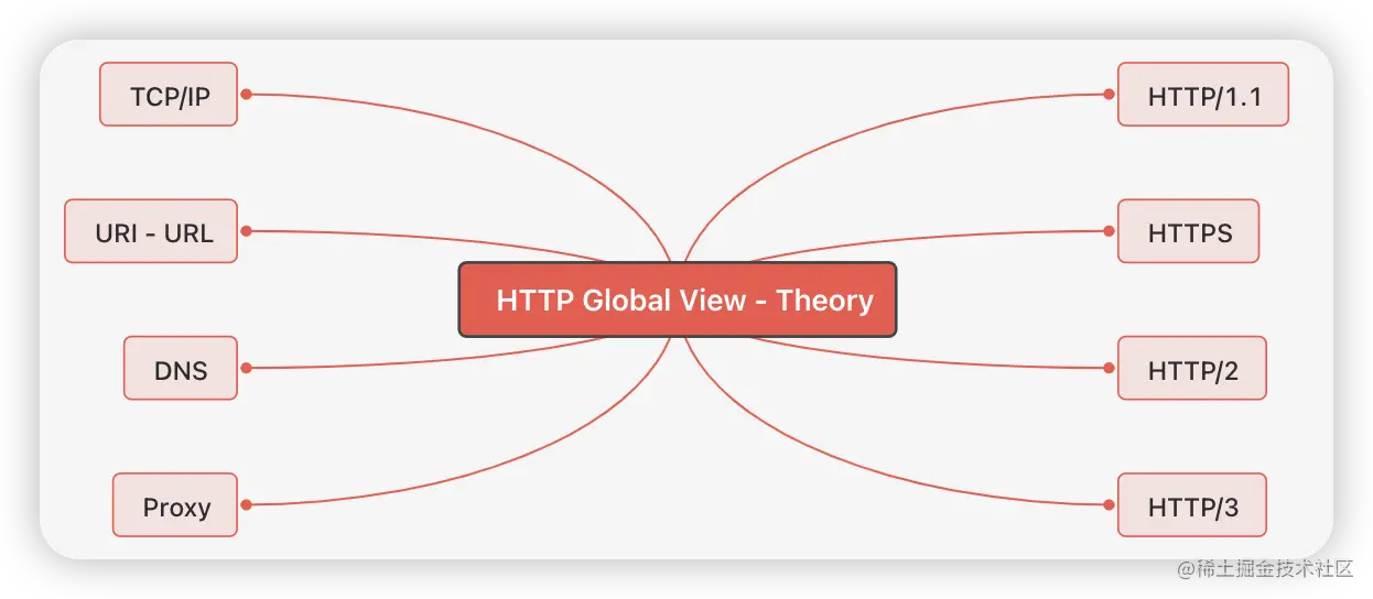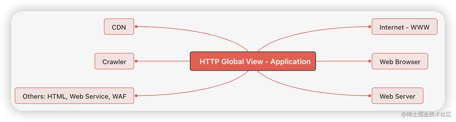 我们再对HTTP世界的全貌进行一下浏览,主要分为应用相关和理论相关。有了对HTTP通信链路更宏观的认识,我们在定位问题的时候,能够更清楚问题可能是由哪个环节导致的。