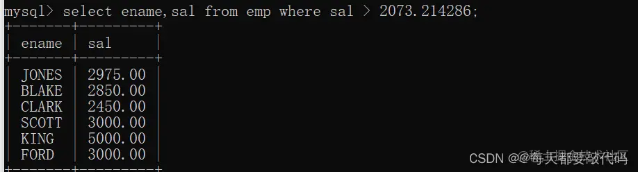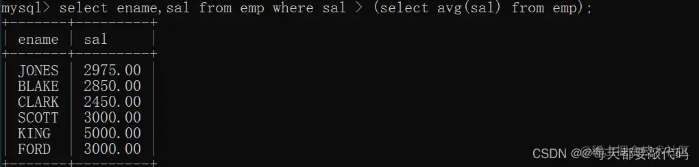 select ename,sal from emp where sal > (select avg(sal) from emp); --正确写法