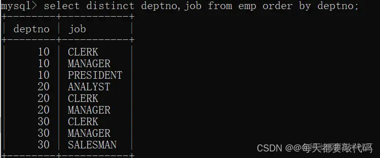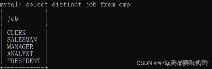 (2)distinct只能出现在所有字段的最前面,表示后面的字段联合去重
