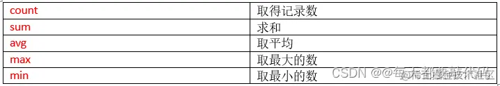 并且任何一个分组函数(count sum avg max min)都是在group by语句执行结束之后才会执行的;当一条sql语句没有group by的话,整张表的数据会自成一组。